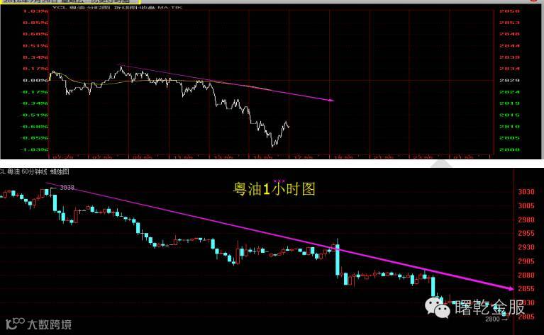 粤油日线图整体均线向下,价格位于短期5日均线下方,紧贴布林下轨,MACD指标绿色量能继续放量,小级别来看下行速度会有所减缓,操作时尽量以高空为主,内部家人可联系分析师助理获取详细策略布局,具体的技术分析及策略操作也可重点关注直播室。