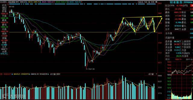 当下创业板涨跌的关键转折点是下方1840附近,只要此点不破,行情虽然震荡但并不是下跌趋势,因此回落到支撑位的时候可以轻仓布局入场,后市一旦向上突破前期压力,有望迎来加速上涨。
