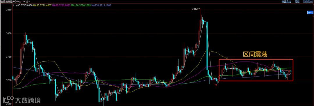 华通银自6月19号大跌后,便出现了长达近一个月的震荡调整,震荡区间在3700~3740。