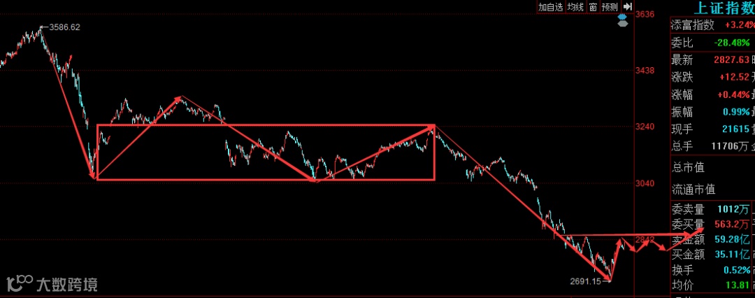 大盘从3587杀跌以来,前期已经构建成功一个标准的线段中枢,近期指数在经过连续下跌之后走势出现了本级别的盘整背驰。贸易战利空消息兑现,技术形态上出现背驰,引发了从上周五以来的反弹,从目前的走势看反弹还是没有结束的。上方重要的压力在2850附近,从近期反弹的力度看是有机会去挑战这个位置,关键是突破后的力度,预计会在这个位置构建一个次级别中枢然后反弹出新高,所以暂时不用太担心指数。