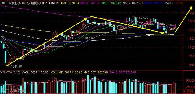 创业板走得更好,一举突破了重要的均线233日均线以及压制的均线密集区,短线还会对该区域反复确认。如进一步企稳,则将去尝试上方高点1927,这个过程需要成交量的配合。