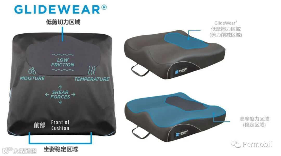 通过合适的坐垫材质及坐垫套材质的选择,最小化接触面的摩擦力及表面张力,以达到最大程度降低您在坐垫上移动时发生剪切力的可能性。