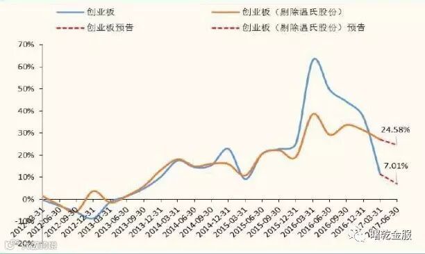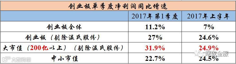 更客观来看,将温氏股份剔除后(权重比例大,扰动整体业绩明显),创业板中报净利润增速回升到24.58%,相比第1季度(剔除温氏股份)27%的增速小幅下滑。