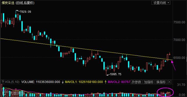 重点关注的板块是煤炭。元旦之前煤炭已经反弹,并在昨日突破了图中的趋势线,走出底部结构。虽然还有待回踩确认其突破的有效性,但走势好转,值得期待。