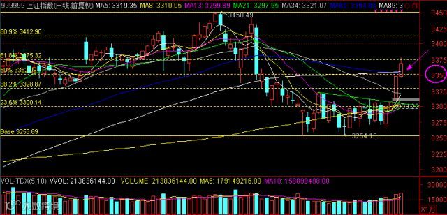 单就目前的上涨而言,走势确实保持不错。但要形成反转走出上升波段,还需要研判大盘能否企稳均线系统上轨线3350-3355。