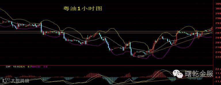 粤油日线图分析,短期均线拐头向上,中期均线维持空头走势不变,价格仍然位于布林中轨下方,MACD指标0轴下方金叉,短期走势看,价格一直维持在布林中上轨之间运行,上涨动能强盛,今日操作可尽量以低多为主,内部家人可联系分析师助理获取详细策略布局,具体的技术分析及策略操作可重点关注视频直播室。