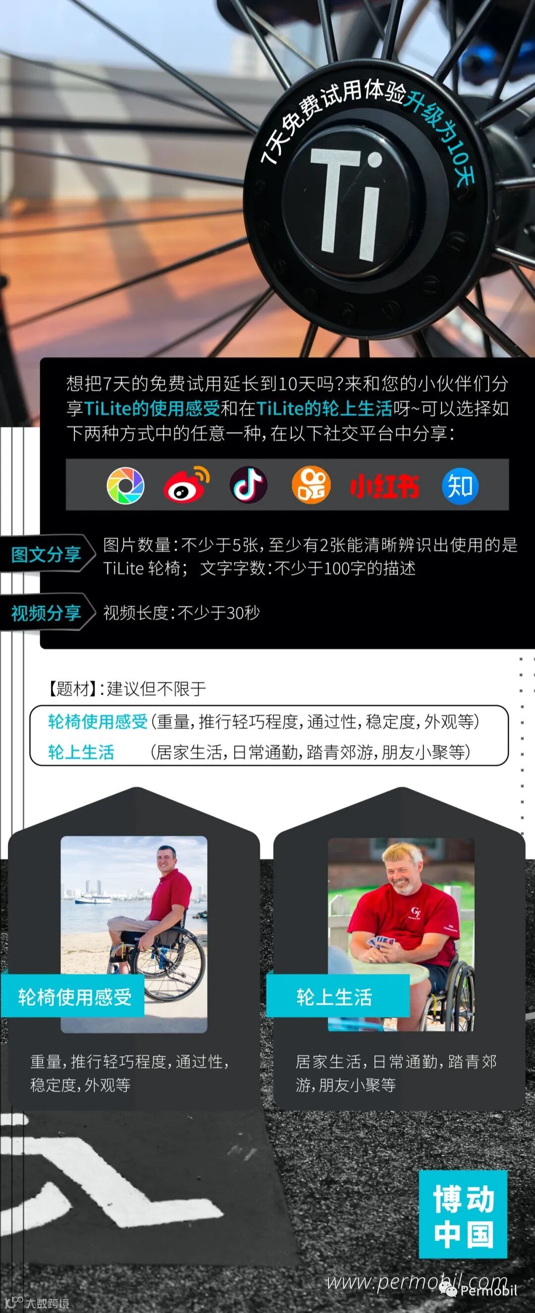 想把7天的免费试用延长到10天吗?来和您的小伙伴们分享TiLite 的使用感受和在TiLite的轮上生活呀~可以选择如下两种方式中的任意一种,在以下社交平台中分享: