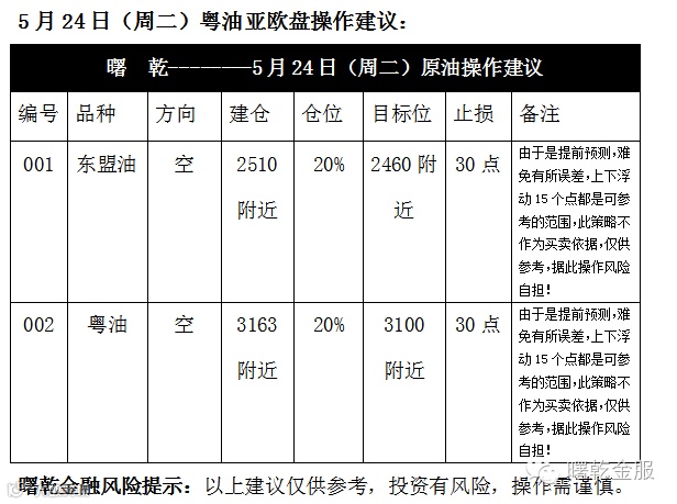 曙乾金服 5.24(周二)行情分析及操作建议: