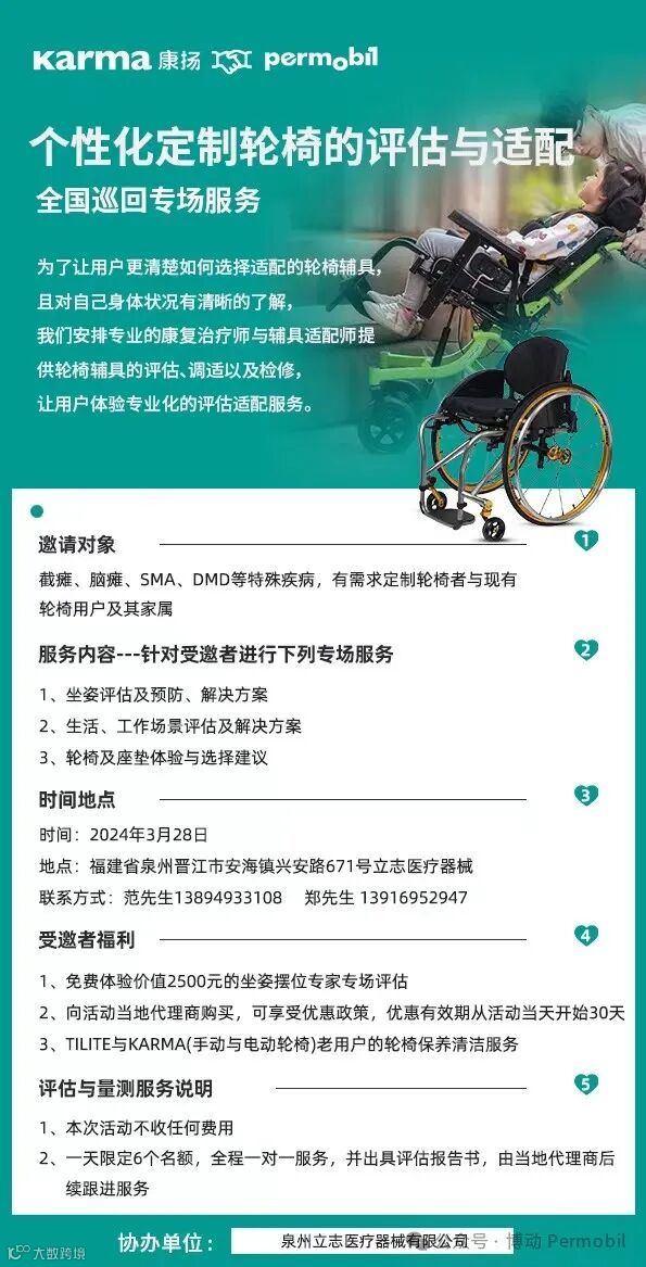 个性化定制轮椅的评估与适配专场活动,活动现场有专业的康复治疗师与辅具适配师提供轮椅的评估、调适以及检修,让您体验专业化的评估和适配服务。