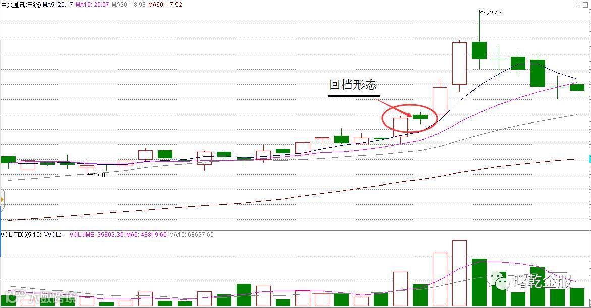 回档是启动一日阳线之后没有紧接着连涨,而是停下来滞涨整理,表现的单日形态有许多种,小上影,十字星,小阴线等。
