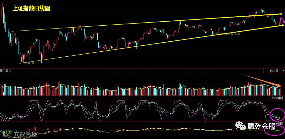 代表市场赚钱效应的创业板已经率先跌破上升楔形下轨,后期能否成功再次站上楔形下轨,目前仍没有明确的信号,所以不能排除指数后期再度下探到1920-1930点区域!