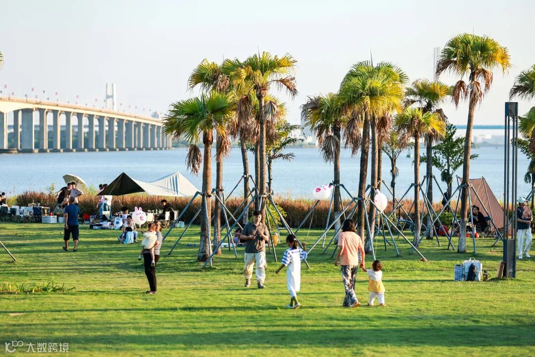 市民在南沙慧谷超级堤东段看海、露营。2025年9月,南沙20公里美丽海岸线工程正式贯通。刘伟 摄