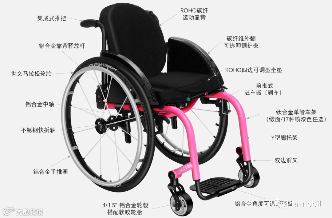 钛合金轮椅的推行体验:钛具有良好的韧性,这可以减少传递给用户的振动。能够带给使用者乘坐更加舒适平稳的推行体验。 -