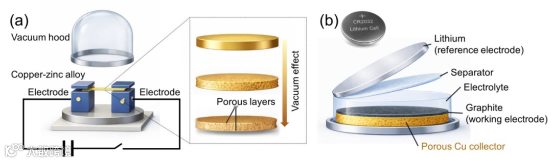 图1b是锂石墨半电池结构:石墨涂在多孔铜或商业铜箔上,锂金属作对电极。