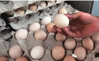 蛋壳上附着一层霜状粉末,蛋壳颜色鲜明,气孔明显的是鲜蛋;陈蛋正好与此相反,并有油腻。