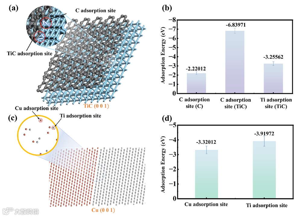 DFT计算证实:TiC/石墨吸附能 -6.84 eV,是Ti/Cu体系的 1.75 倍