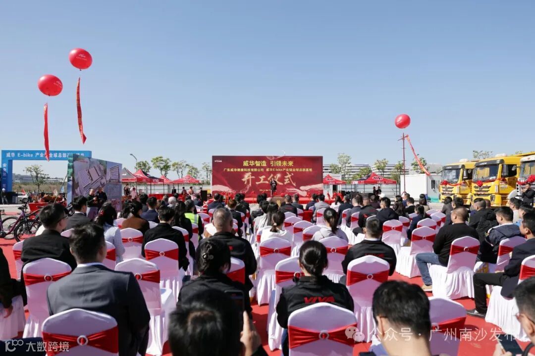 11月29日,威华E-bike产业链全球总部基地项目(以下简称“威华项目”)开工仪式在南沙区大岗穗港智造基地举行。项目建设完成并投产后将具备超11万台E-bike产能,年产值可达10.90亿元,主要产品包括E-bike、智能设备及周边产品、运动健康食品三大部分。