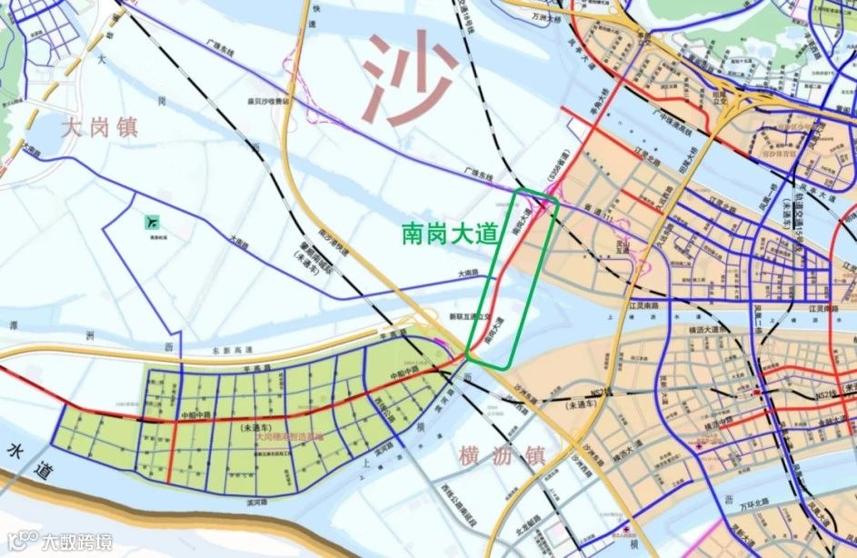 在南沙区现行路网规划中,由中船中路、新联立交、南岗大道、省道 S358 、亭角大桥等5个项目首尾相接而形成的主干路走廊带,是“三高三快”西部高速通道的重要组成部分,也是串联大岗先进制造业基地、明珠湾起步区与蕉门河中心区等重要区块的快速连接通道。