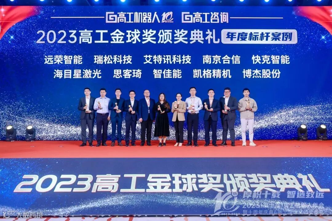 13日晚,以“厚积十载 智造致远”为主题的2023(第十届)高工机器人年会暨十周年庆典在深圳机场凯悦酒店圆满落幕。颁奖典礼上远荣智能凭借其卓越的智能制造解决方案和项目案例,荣获了2023高工金球奖年度标杆案例奖。这一荣誉不仅是对远荣智能在智能制造领域的突出贡献的认可,也是对其不断追求创新、提升技术实力的肯定。