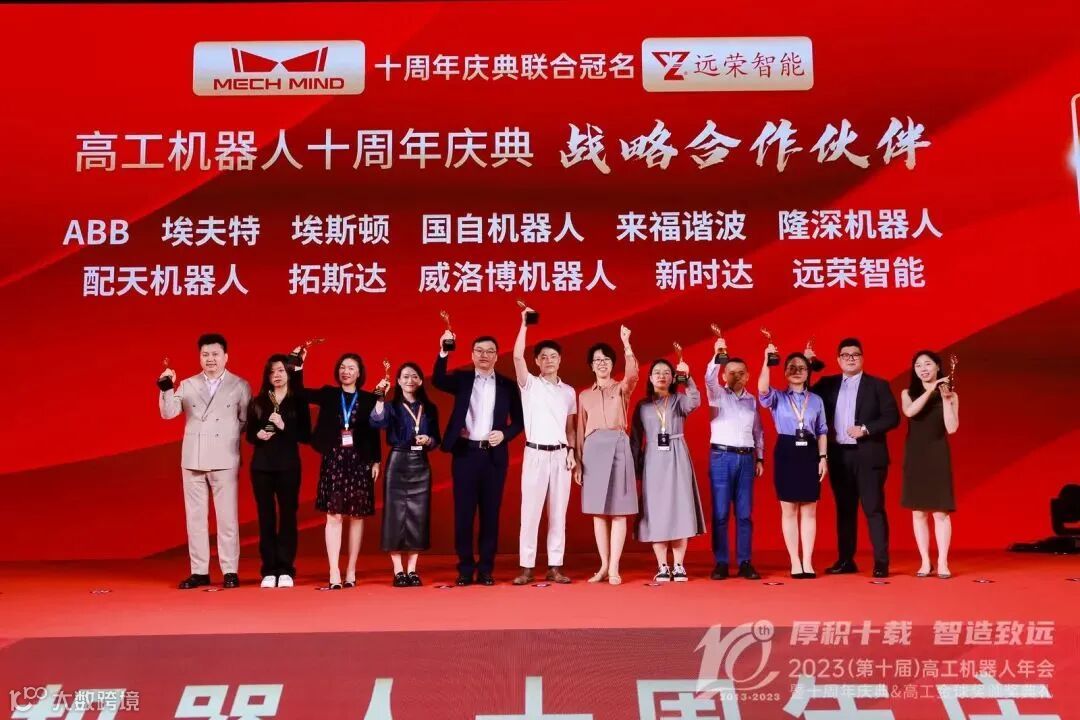 此外,远荣智能还斩获高工机器人十周年庆典战略合作伙伴奖项,在过去的十年里,远荣智能与高工机器人携手共进,为中国智能制造行业的发展贡献了力量。未来,远荣智能将与更多的合作伙伴一起,共同推动中国智造事业的发展。