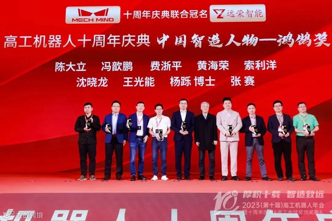 在庆典现场,远荣智能董事长黄海荣荣获高工机器人颁发的中国智造人物—鸿鹄奖。这一殊荣不仅是对董事长黄海荣个人的肯定,也是对远荣智能在智能制造领域杰出贡献的认可。
