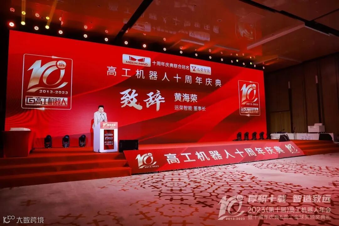 11日晚,由【远荣智能&梅卡曼德联合冠名的】高工机器人十周年庆典上,远荣智能董事长黄海荣在大会上发表致辞,他表示:“‘苟日新,日日新,又日新’,这是远荣智能及高工机器人团队一直以来的信条,也是我们不断创新的动力源泉。正如这句箴言所表达的,唯有不断追求卓越,不断更新自己,我们才能在市场的激烈竞争中立于不败之地。"