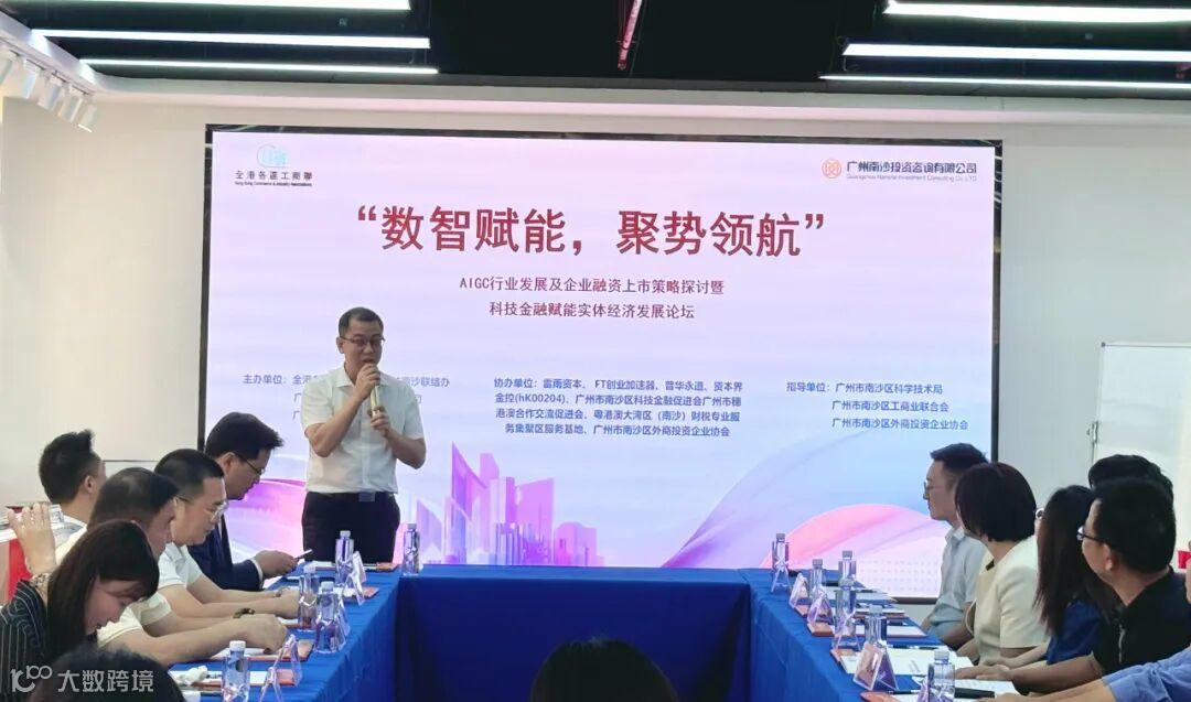 2024年7月31日,由广州市南沙区科学技术局、广州市南沙区工商业联合会指导,全港各区工商联大湾区驻南沙联络办、广州市裕廊科技发展有限公司、广州南沙投资咨询有限公司主办,雷雨资本、FT创业加速器、资本界金控(HK00204)、普华永道、广州市穗港澳合作交流促进会、广州市南沙区科技金融促进会、广州市南沙区外商投资企业协会、粤港澳大湾区(南沙)财税专业服务集聚区服务基地等多家协会及行业代表协办的“数智赋能,聚势领航”AIGC行业发展及企业融资上市策略探讨暨科技金融赋能实体经济发展论坛在粤港澳大湾区合作交流中心圆满举办。