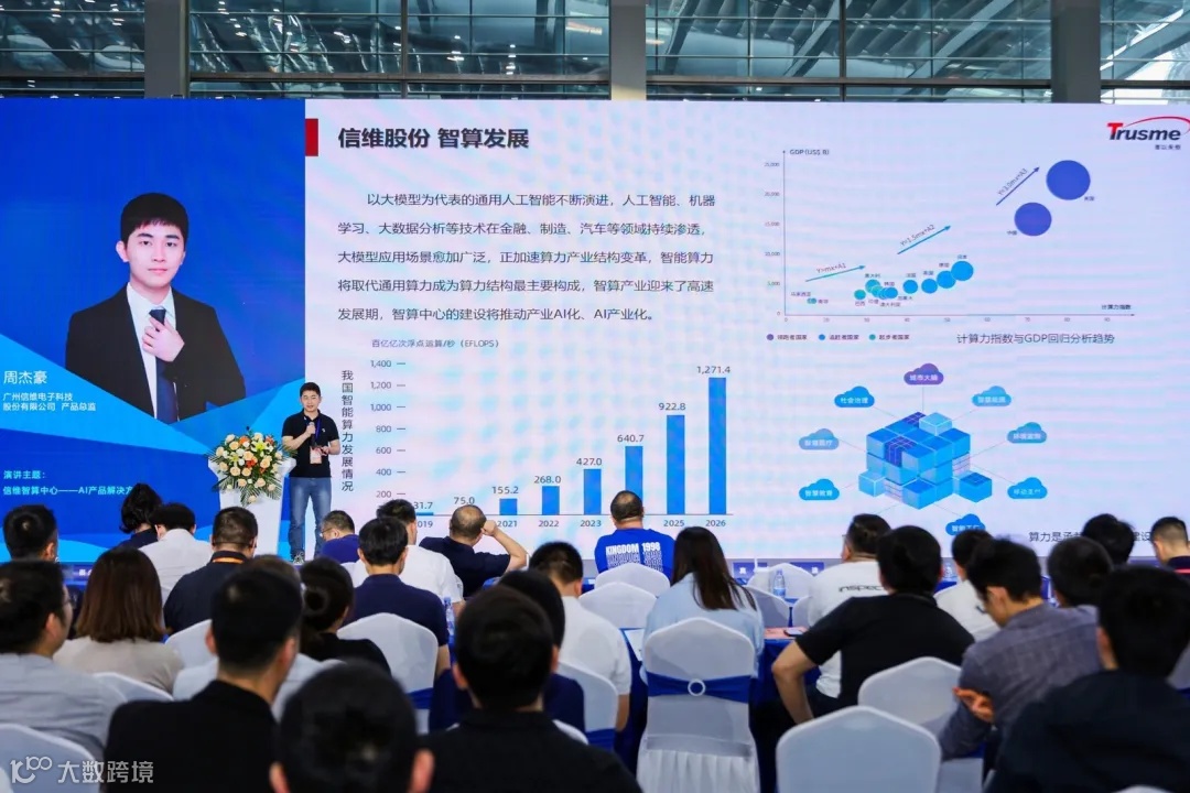 在AI算力产业大会上,信维股份产品总监周杰豪先生,受邀参加论坛演讲,为国内外的参展观众介绍《信维智算中心——AI产品解决方案》,让参展观众进一步的了解信维股份作为领先的智算基础设施及服务提供商,致力打造服务器助力客户一站式部署智算底座,快速落地AI场景化应用,有效满足AIGC时代的需求。