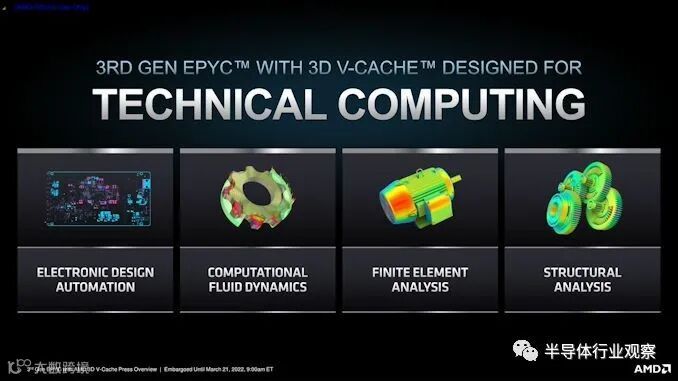 就 AMD 而言,他们特别在 CAD/CAM 市场上推销新芯片,用于有限元分析和电子设计自动化等任务。据该公司称,在具有和不具有 V-cache 的 Milan 处理器之间的苹果对苹果的比较中,他们发现 Synopsys 的 VCS 验证软件的 RTL 验证速度提高了 66% 以上。与包含更大缓存的其他芯片一样,最大的好处将出现在从现代大小的缓存溢出的工作负载中,但会巧妙地适应更大的缓存。最大限度地减少昂贵的主内存访问意味着 CPU 内核可以更频繁地保持工作。