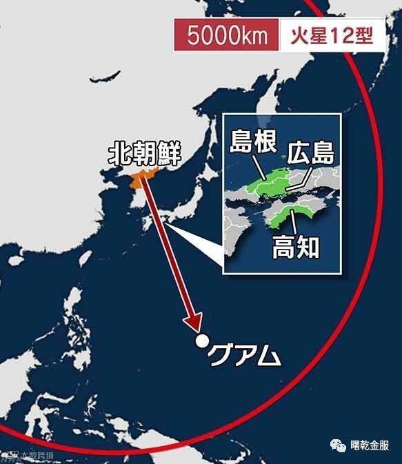 朝中社援引朝鲜人民军战略军司令金洛谦大将的话报道说,朝鲜人民军正慎重考虑通过同时发射4枚“火星-12”型中远程战略弹道导弹对关岛进行包围打击的方案。