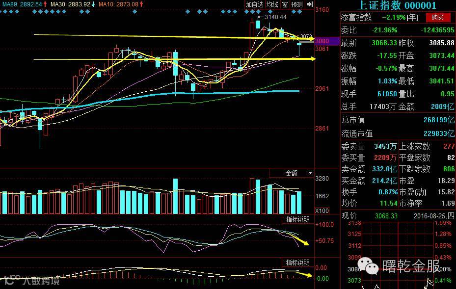 自本月12和13日大盘启动的两根突破性长阳以来,最近8个交易日大盘指数一直维持震荡下探的运行走势,同时技术指标方面的表现依旧处于调整的态势之中,似乎仍未能看到技术指标修复结束的苗头。自两根大阳线以来,我们连续7个交易日提醒投资者一定要注意大盘震荡回踩的风险,同时也反复提醒市场的热点将逐步减少,操作难度大增的风险,自此今日,大盘的运行趋势和盘面上板块之间的变化完全验证了我们的判断。