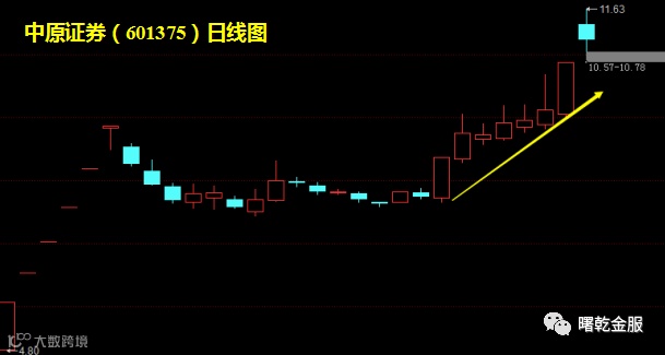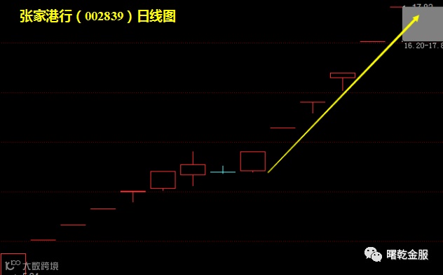 本轮行情起涨点:2017年2月8日开启的5连阳,就是中原证券,中国银河在午盘后瞬间涨停,激发人气!随后2月10日张家港行开始涨停,本周5个连续涨停,江阴银行也拉出5天4涨停!