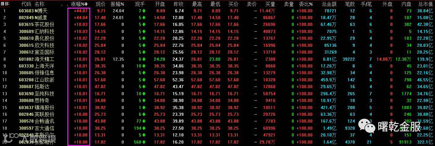 如今次新板块既有大涨股,也有大跌股,而且大跌股就是来自大涨股,当日涨停,次日跌停。次新股炒作,恰恰是上市后一字涨停后的活跃,直接高举高打的游资行情,很容易构造历史性的顶部,是完全脱离基本面的投机搏傻模式。大家较难参与,风险较大,贸然介入就成为接盘侠!