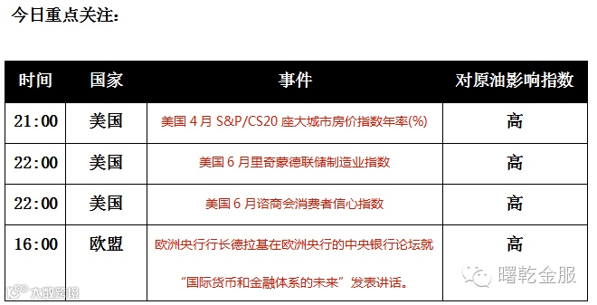 1、英国上周公投意外脱欧的结果给市场带来的影响继续发酵,市场情绪依然十分悲观,评级机构纷纷下调英国评级,市场普遍预计全球央行将会采取更多宽松措施。在避险的大环境下,投资者纷纷涌入避险黄金和美元资产。原油方面,脱欧忧虑打压市场需求前景,同样施压油价,油价周一最终收跌接近3%。