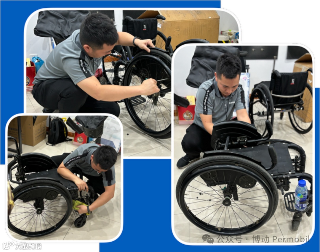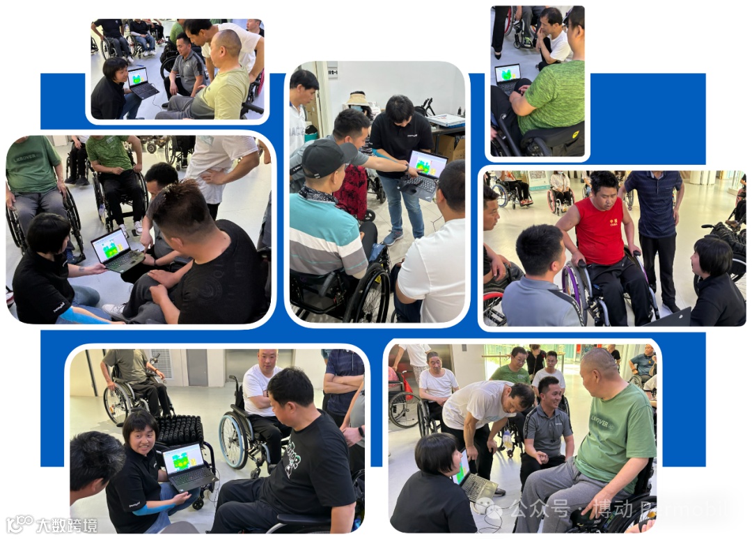 博动与康扬的两位老师为轮友们进行参数量测及轮椅保养修护,照片记录了两位老师认真工作的身影,以及各位轮友对自己出行伙伴关切的眼神。本次专场老师带来了压力测试仪,从轮友们的测试结果可以看到,ROHO坐垫在分散压力上有明显效果,同时也让 ROHO 老用户改变常见的迷思,有些人以为要把气囊充饱才能减压,