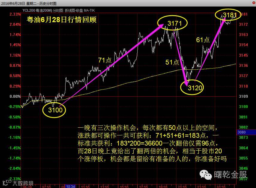 昨日行情低开高走震荡上行,本周一延续了上周五的行情走势,持续下跌最低至3056点,跌穿了前期低点,周二行情对退欧事件有所回暖,受60天均线支撑,行情急速反弹上涨震荡上行,呈现出V字形态,价格向上突破周一时的最高点位,到美盘期间有所回落后,伊斯坦布尔机场恐怖袭击事件影响,导致原油价格继续震荡上行至当日最高点位3180附近。