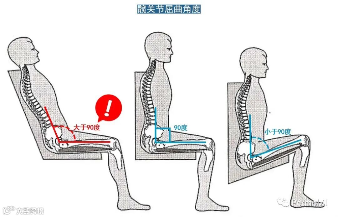 另一个常会见到骨盆后倾坐姿的原因,是忽略了个人可能具有大腿后侧肌群紧绷缩短或/和髋部无法弯曲至90度之关节活动角度受限的情形,进而使人无法达成端坐正的姿势。