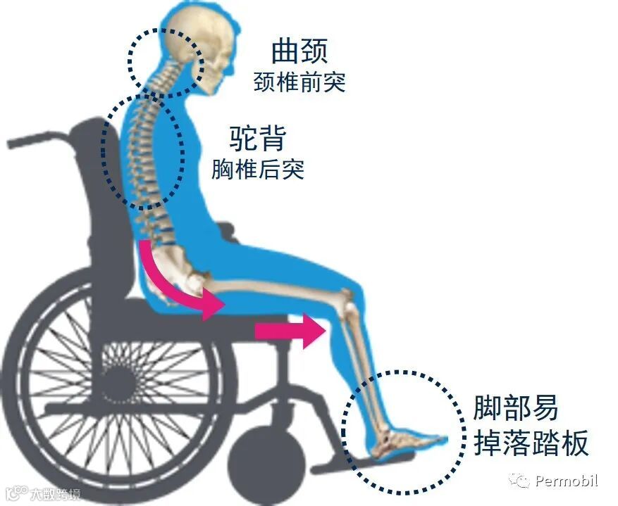为什么很多轮椅使用者身体状况良好,但是坐在轮椅上却总显得没有精神,看起来虚弱无力?如下图所示这样瘫坐在轮椅上的推行姿势是不是有点熟悉?这个月的博动学院要带您了解不良坐姿的负面影响。