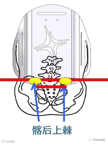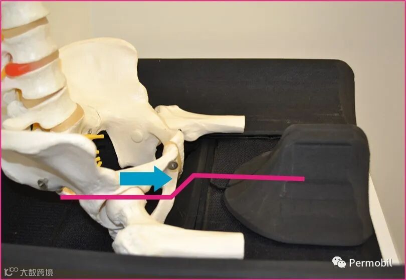 理想情况下,我们希望这个抗推力带正好位于您坐骨结节的前方,这样的设计能够协助抑制坐骨结节向前滑动、骨盆向后旋转成后倾姿势。