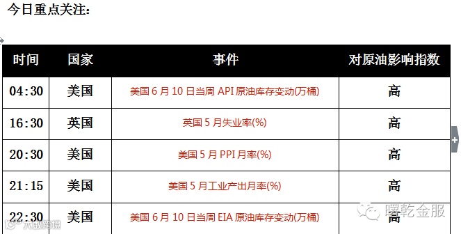 粤油方面昨日6月14日周二亚欧盘市场行情走势清淡,一直处于窄幅震荡,下午16点IEA原油月度报告数据公布也并没有给予市场太大的波动幅度,很显然原油市场还在等待更加重量级的消息出现,最后到直到美盘期间,API数据公布,原油市场的库存数据增加了很多,导致原油价格跳空下跌,空头势力强盛。