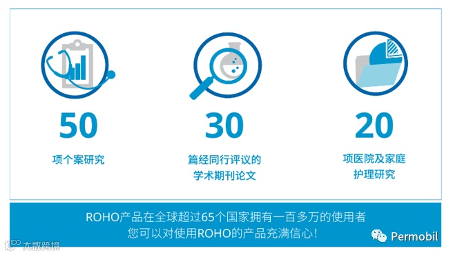ROHO系列产品经过了临床医生和科学家40多年的验证,拥有90余篇相关的科学及临床研究,证实了ROHO减压成效方面的专业水准。