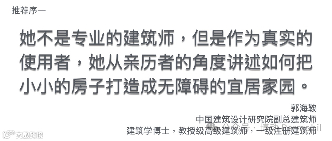 作家易懿,最新出版《无障碍的家-室内设计与改造》书籍,图文并茂,从自家改造过程中经历的一些“不顺”,总结出来适合轮椅使用者的无障碍环境改造经验,分享居家无障碍设计中的各项细节。您知道最多无障碍“地雷区”是在卫生间吗?您的回家之路是有门槛吗?这本书里头,借由居家各处环境中的无障碍通用设计,让您打开思路,有一种:「原来还可以这样啊!」的豁然开朗。