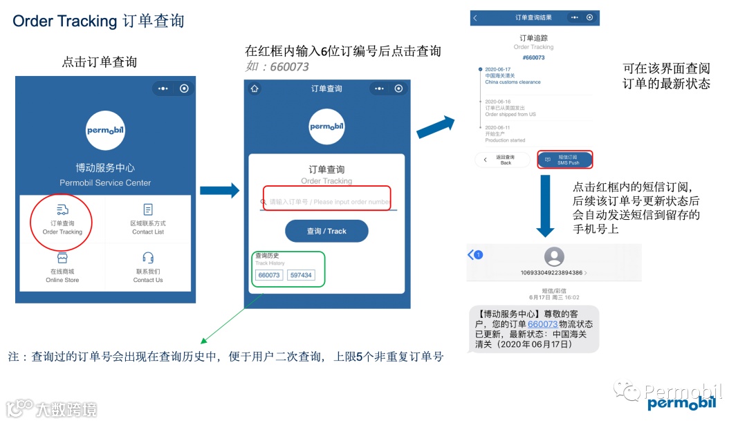进入小程序界面,即可进行自己的订单查询和追踪,还可以订阅免费的短信提醒功能。