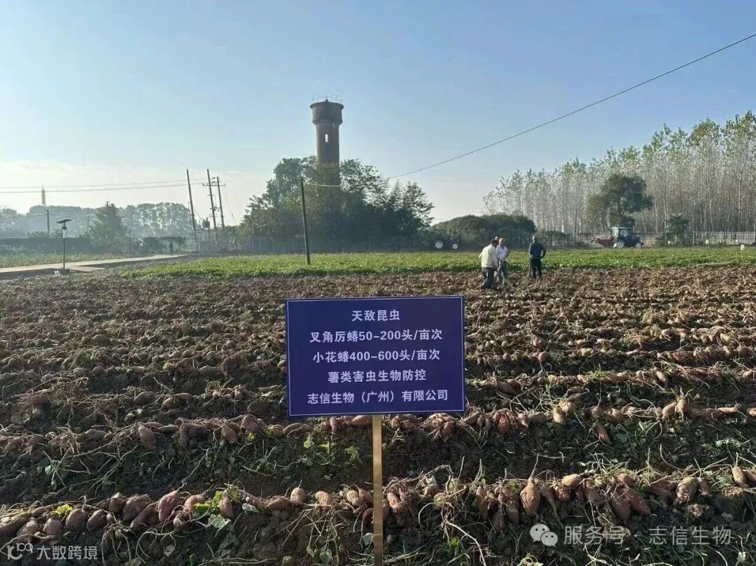 11月16日,志信生物参加了国家重点研发计划项目“薯类病虫害演替规律与全程绿色防控技术体系集成示范”2025 年度现场观摩会。在本次观摩会上,志信生物重点展示了在天敌昆虫技术应用方面取得的突破。通过释放叉角厉蝽(50-200头/亩次)和小花蝽(400-600头/亩次),有效控制了薯类害虫种群数量,实现了对害虫的持续精准防控,防效显著,展现了生物防控技术的独特优势。