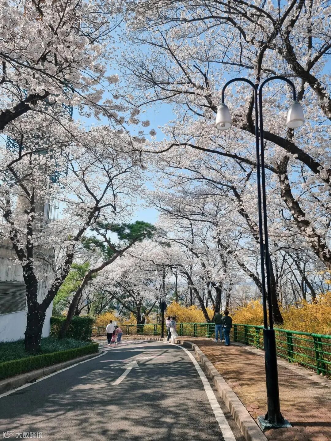 汝矣岛轮中路樱花隧道:首尔顶流赏樱地,1.7公里长的步道两侧种有1400+棵樱花树,形成梦幻粉色穹顶。每年举办汝矣岛樱花节,傍晚6点后点亮夜樱,搭配汉江晚风,氛围感拉满;交通:地铁5号线汝矣渡口站2号出口步行5分钟