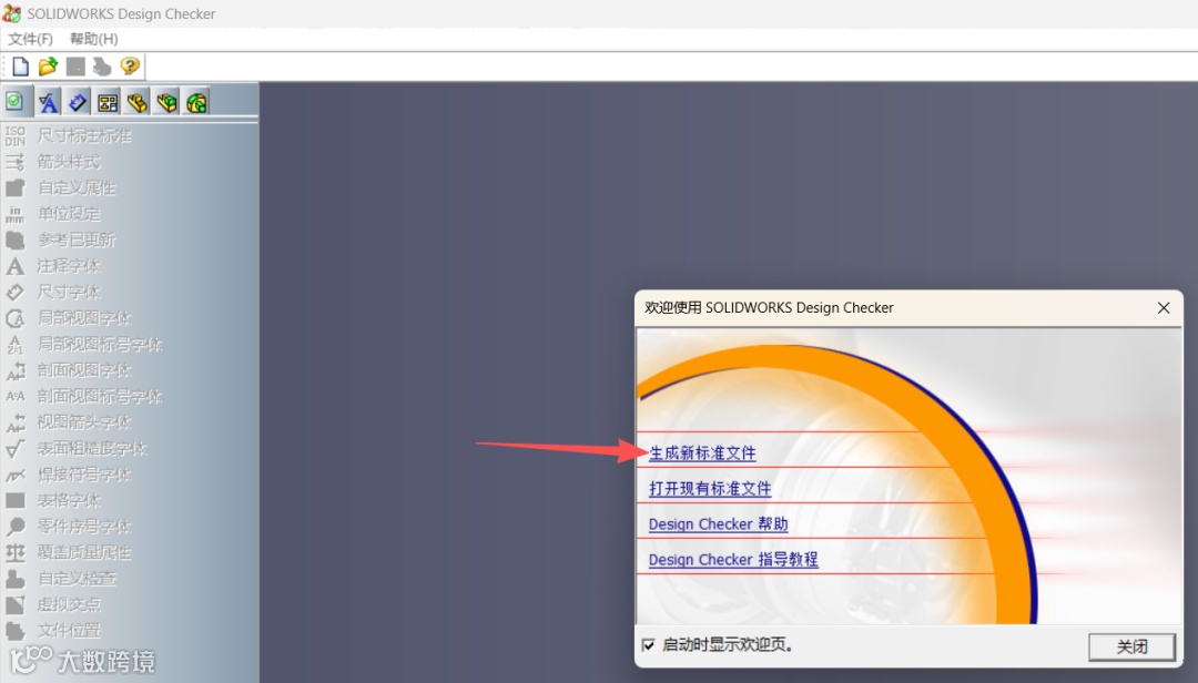 2. 在弹出的SOLIDWORKS Design Checker窗口中,点击“生成新标准文件”。