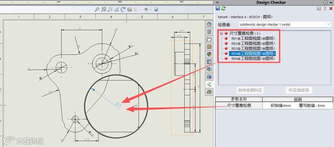 6. 查看结果:检查完成后,所有存在覆盖数值的尺寸将被列出在结果中。您可以据此快速定位并逐一处理。