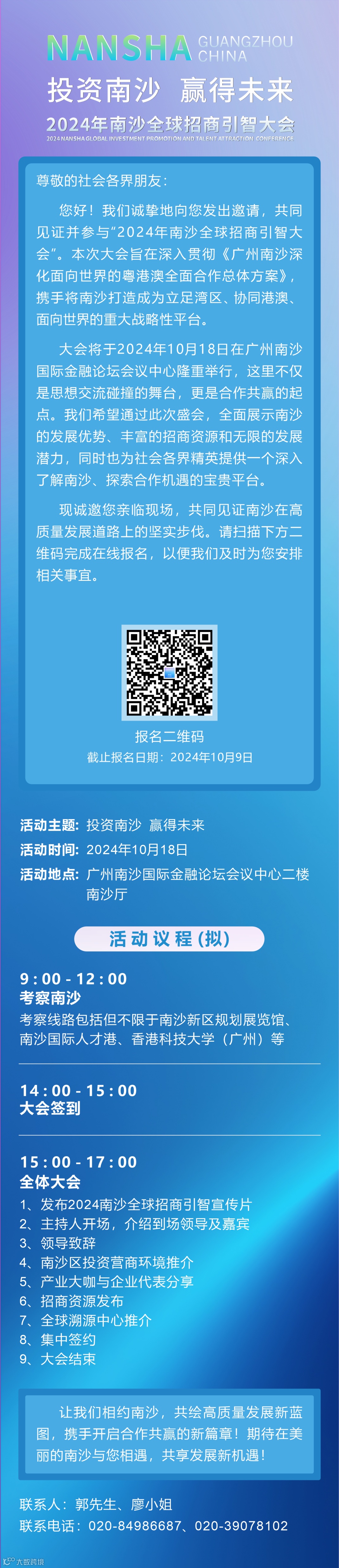 共赢未来!2024年南沙全球招商引智大会开放报名