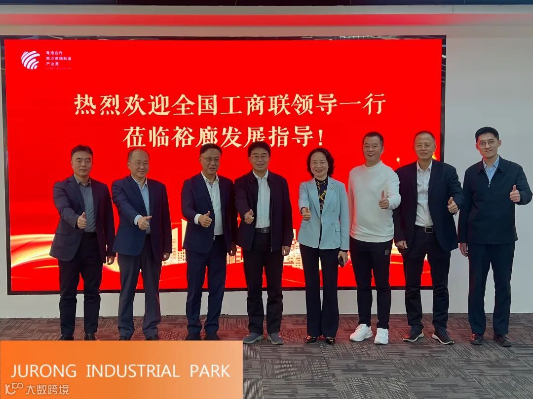 1月9号,全国工商联商会发展服务中心副主任王洪武、广州市工商联副主席余剑春、南沙区统战部部长刘小潼、南沙区工商联党组书记罗建中带队赴裕廊发展大湾区公司进行考察交流,裕廊发展董事长黄顺昌、全港各区工商联首席会长卢锦钦陪同接待。
