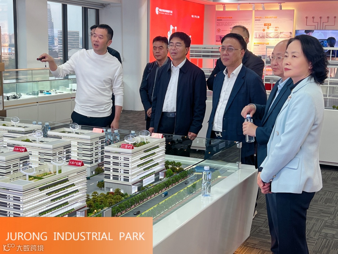 领导一行先参观了大湾区展厅,听取了黄顺昌董事长对公司运营模式及企业赋能案例的分享,并对裕廊发展“一园一企一基金”的投资发展模式表示高度认可。